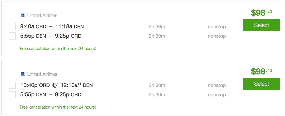 Amazing deal: Chicago to Denver and vice versa flight, roundtrip as low as $98.