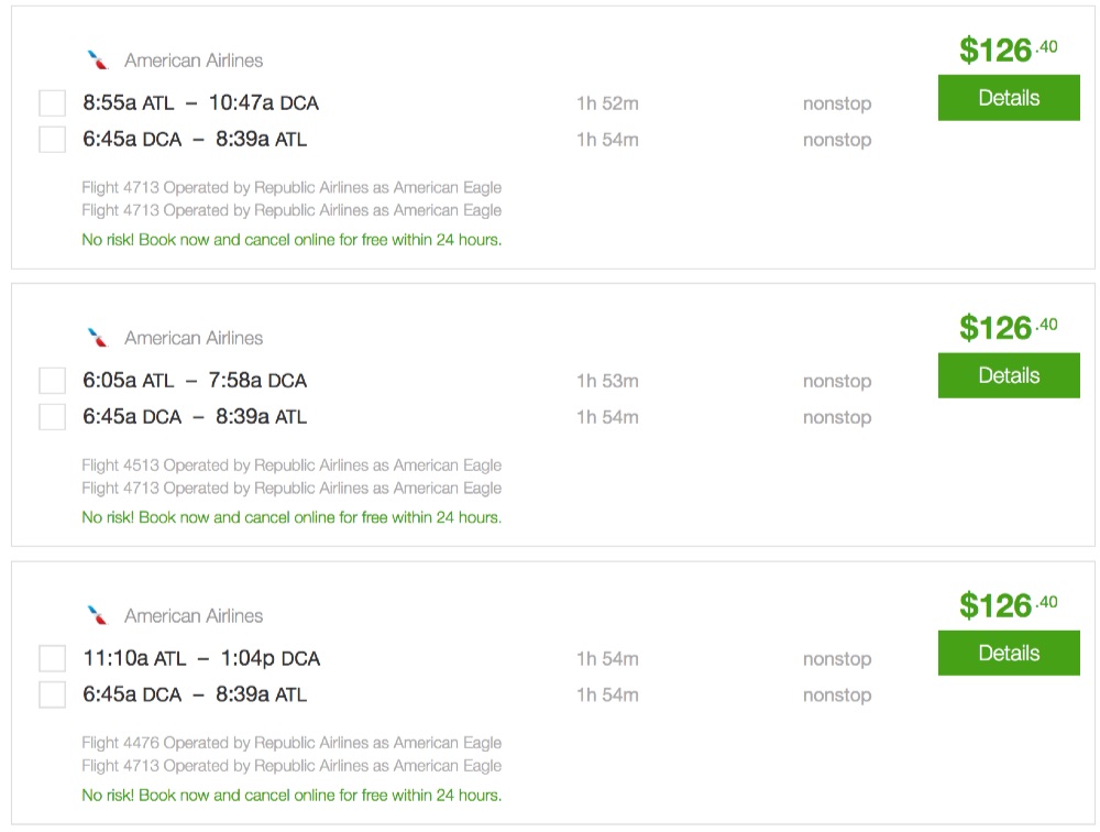Amazing deal: Atlanta to Washington and vice versa flight roundtrip as low as $126 and vice versa .
