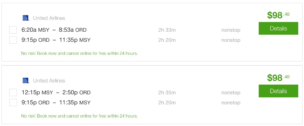 Amazing deal: New Orleans to Chicago or Houston and vice versa flight roundtrip as low as $98.