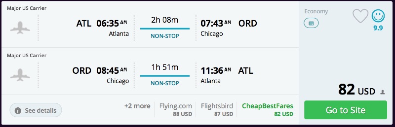 Amazing deal: Atlanta to Chicago and vice versa flight roundtrip as low as $82.