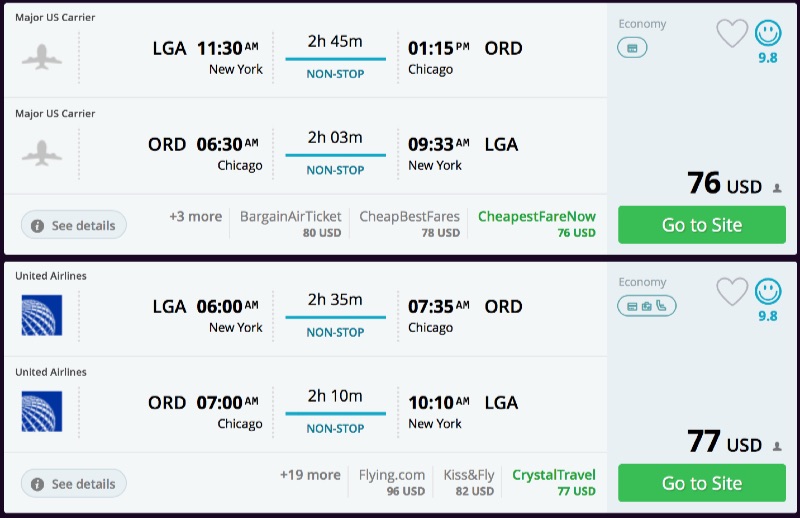 Amazing deal: New York to Chicago and vice versa flights roundtrip as low as $76.