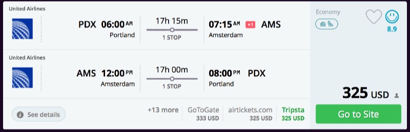 Amazing deal: Atlanta, Miami, Portland, Seattle, Salt Lake City to Amsterdam flight roundtrip as low as $325.