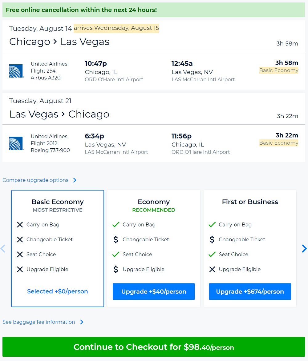 Amazing deal: Chicago to Las Vegas and vice versa flight roundtrip as low as $98.