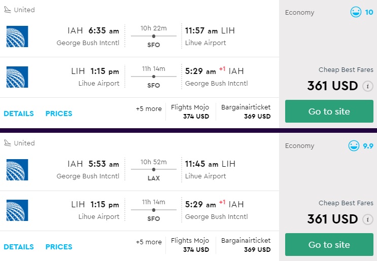 Amazing deal: Houston to Hawaii: Kauai Island and vice versa flights round-trip as low as $361.