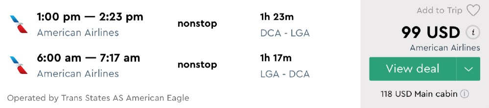 Amazing deal: Washington DC/Baltimore to New York or Miami and vice versa flights roundtrip as low as $100.