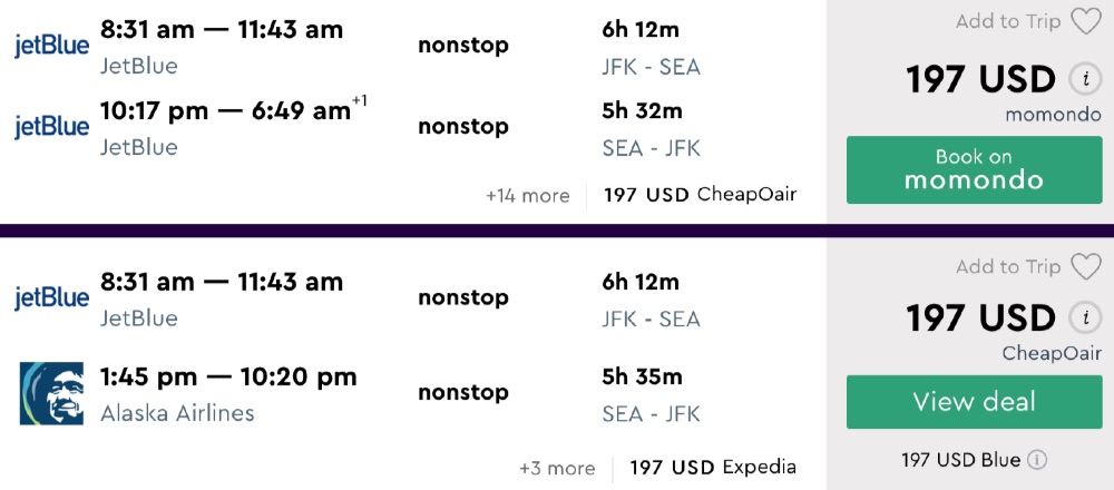 Amazing deal: New York to Seattle/Portland/San Francisco/Los Angeles and vice versa flight round-trip as low as $197.