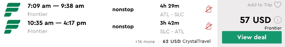 Atlanta to Salt Lake City and vice versa