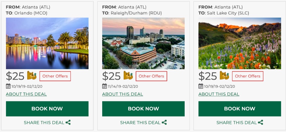 Fares are one way and do not require round trip purchase. Discount Den fares are only available at FlyFrontier.com to members of Discount Den.