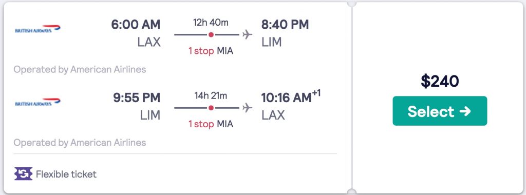 Amazing deal: Los Angeles to Sao Paulo, Brazil or Lima, Peru flights round-trip as low as $240.