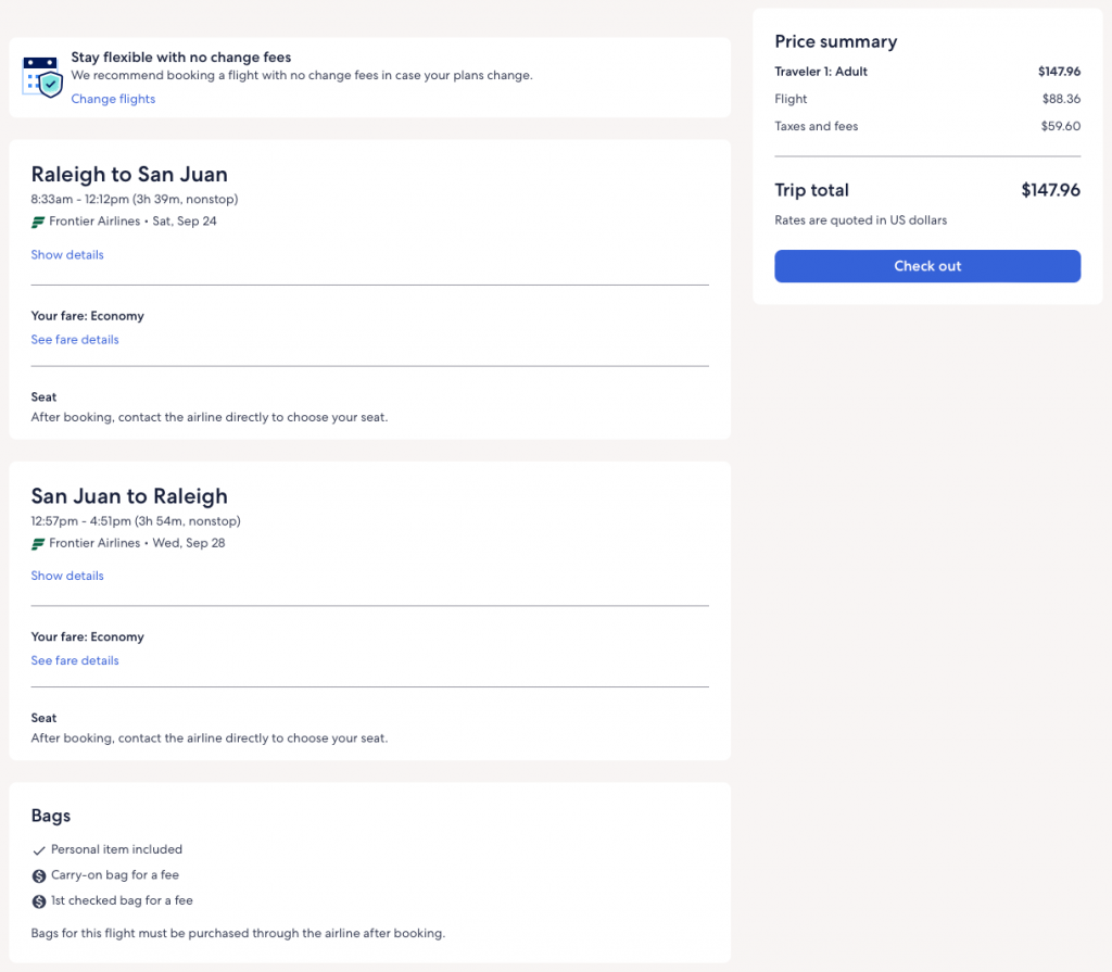 Note, that Frontier is a budget airlines, and has optional fees.