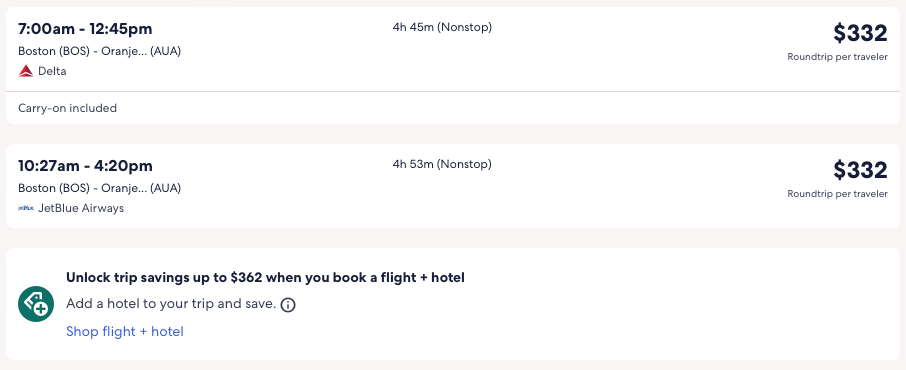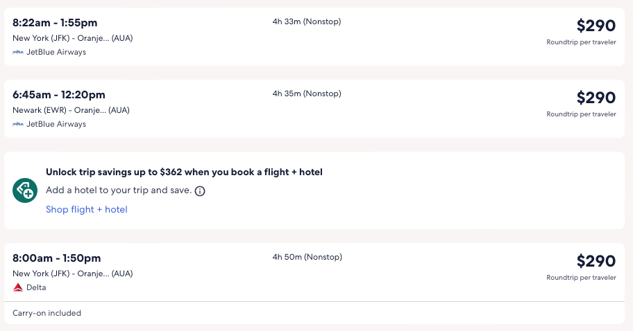 Amazing deal: New York, Newark, Washington DC, Boston to Aruba from $290 round-trip.